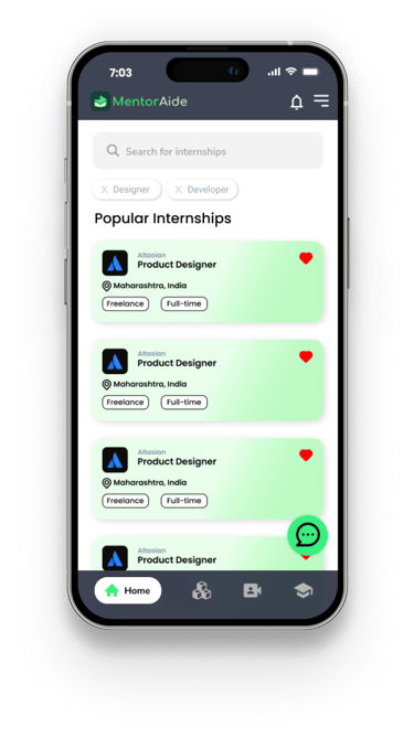 At MentorAide, we believe in learning by doing. That's why we provide internship opportunities with reputed companies. These internships are an essential part of your journey with us, allowing you to apply your knowledge in real-world scenarios, build your professional network, and potentially secure job offers. We're so committed to your success that we guarantee you an internship.