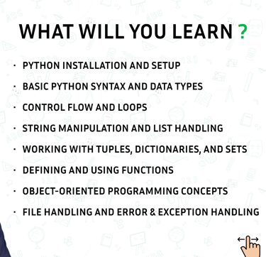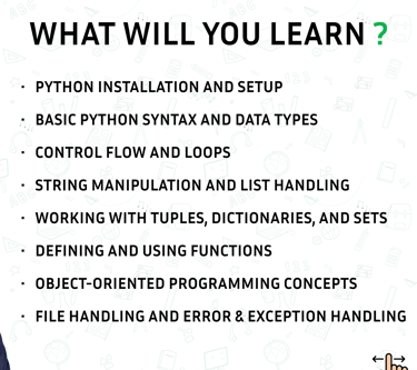 Welcome to the Beginner's Python Course! Covering essential topics like Python basics, data structures,and objectoriented programming, this course offers a certificate upon completion. Dive into programming with us!